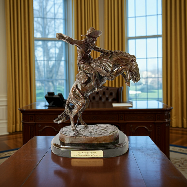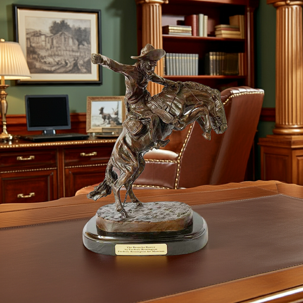This meticulously crafted reproduction honors Remington’s groundbreaking debut as a sculptor. Every detail, from the taut reins to the horse’s bucking energy, is preserved in lifelike detail. A timeless symbol of the cowboy spirit, it remains one of the most iconic works of Western art.